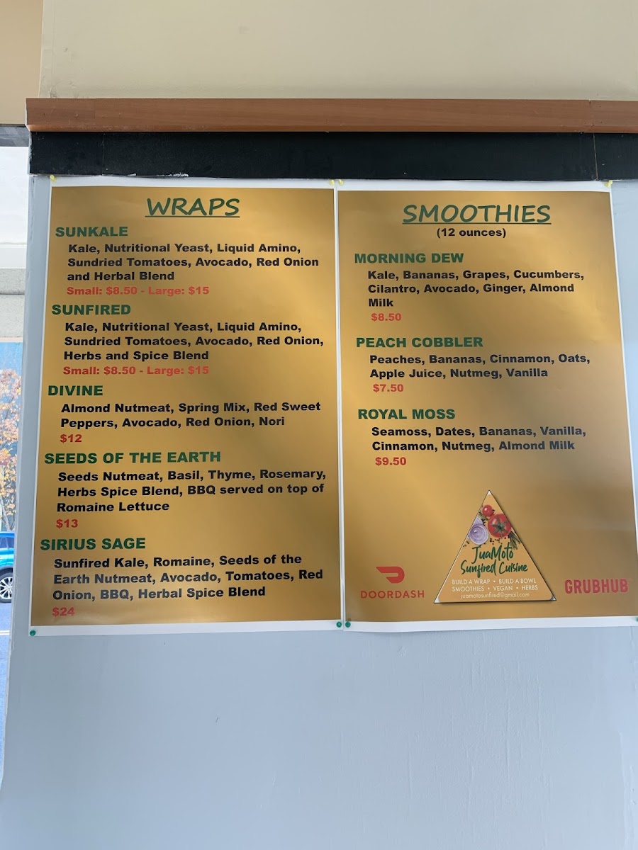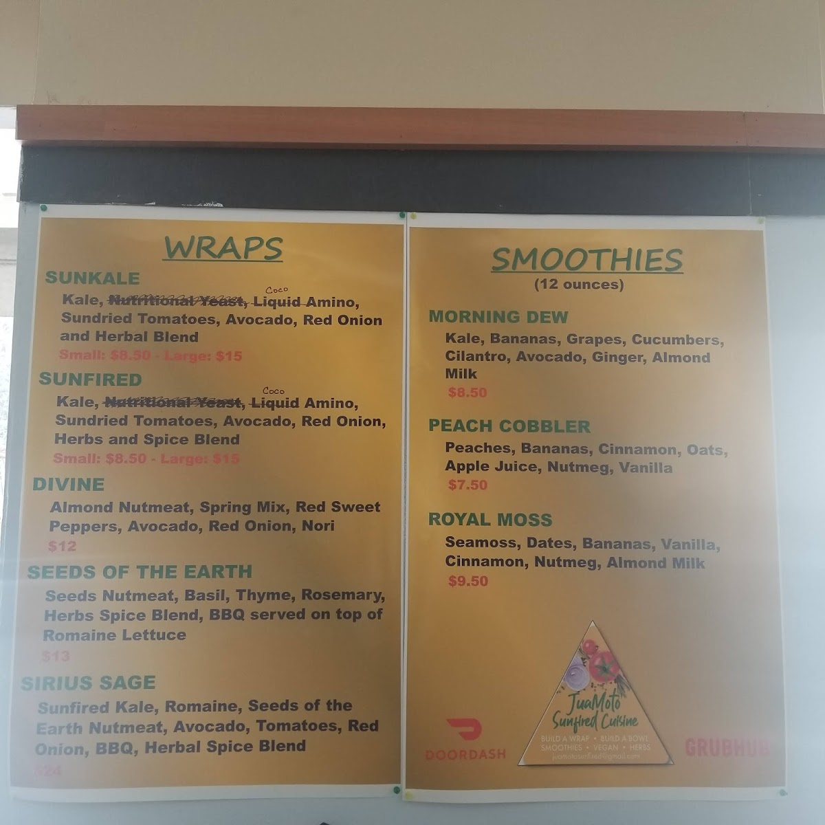 Welcome to Juamoto Sunfired Cuisine, a hidden gem in Concord, NC, where vibrant flavors and health-conscious dining collide. This cozy eatery specializes in raw vegan dishes that promise satisfaction without compromising on taste. Customers rave about the legendary Sunfired Wrap and the Royal Moss Smoothie, both celebrated for their bold flavors and nourishing ingredients.